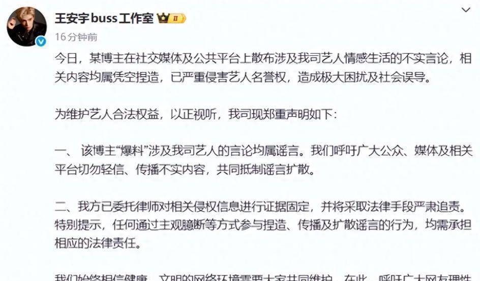 鹿晗工作室的反应堪称教科书级速度。凌晨五点,连续两条声明砸出:“已固定全部证据,即刻启动法律程序”,强硬态度直接打了爆料者一个措手不及。反观其他被点名的明星,林更新工作室玩起“阴阳文学”,否认之余还加了句“若患病属实祝早日康复”,暗讽对方拿抑郁症卖惨;关晓彤团队则紧急与王安宇工作室联合辟谣,可惜公众注意力早被“八年情变”的猜测带偏——毕竟这对情侣自2024年8月后就再没同框,去年生日更是破天荒没互动。